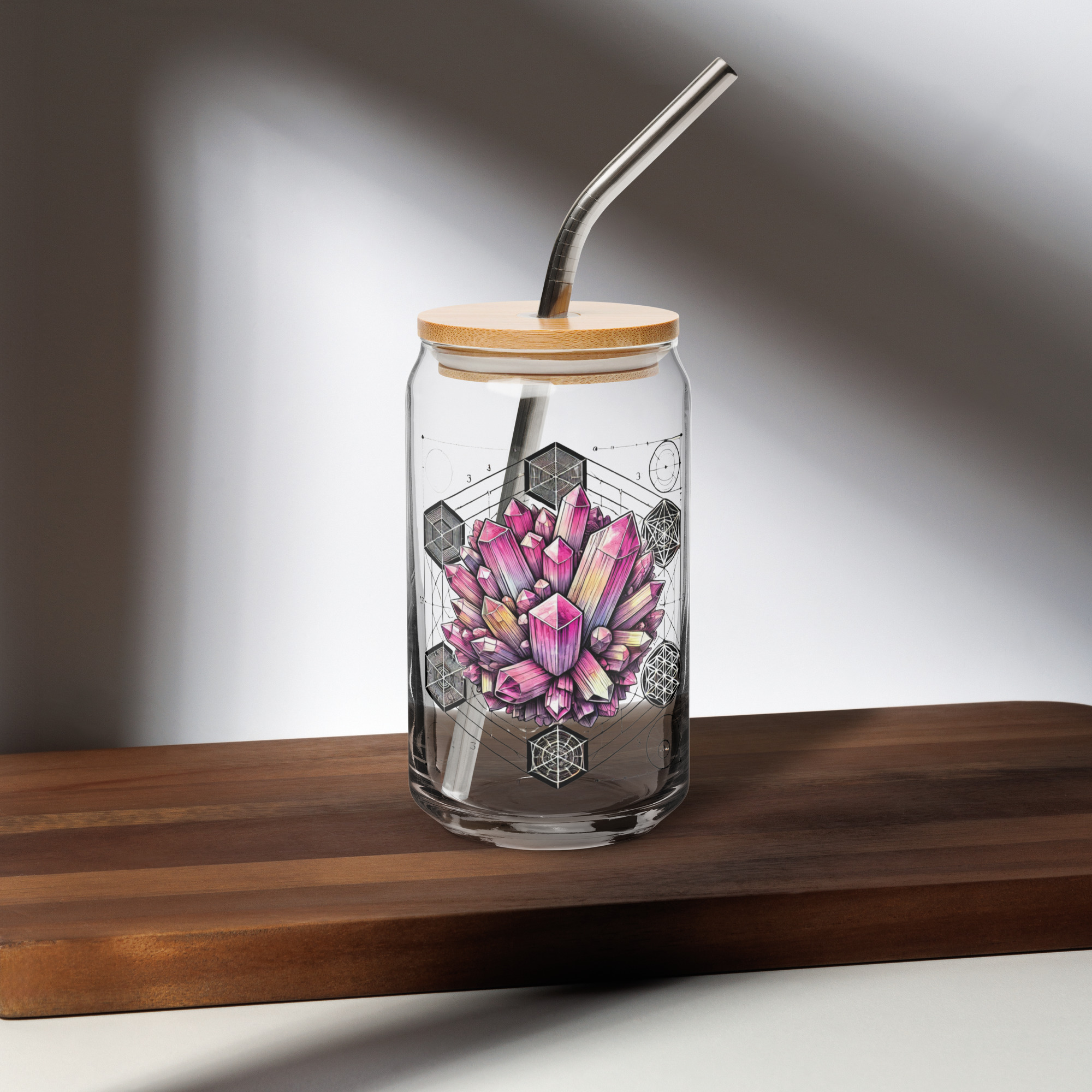 Whether you enjoy drinking refreshing sodas, iced coffees, cocktails, or even fancy mocktails, this glass is a perfect choice. With its trendy design and the timeless appeal of glassware, it will become a staple for your beverages. Each glass is designed to capture the energy of your favorite stones, turning every drink into a sparkling moment of intention. Whether you’re sipping iced coffee or moon water, this is the ultimate way to stay high-vibe and hydrated!
